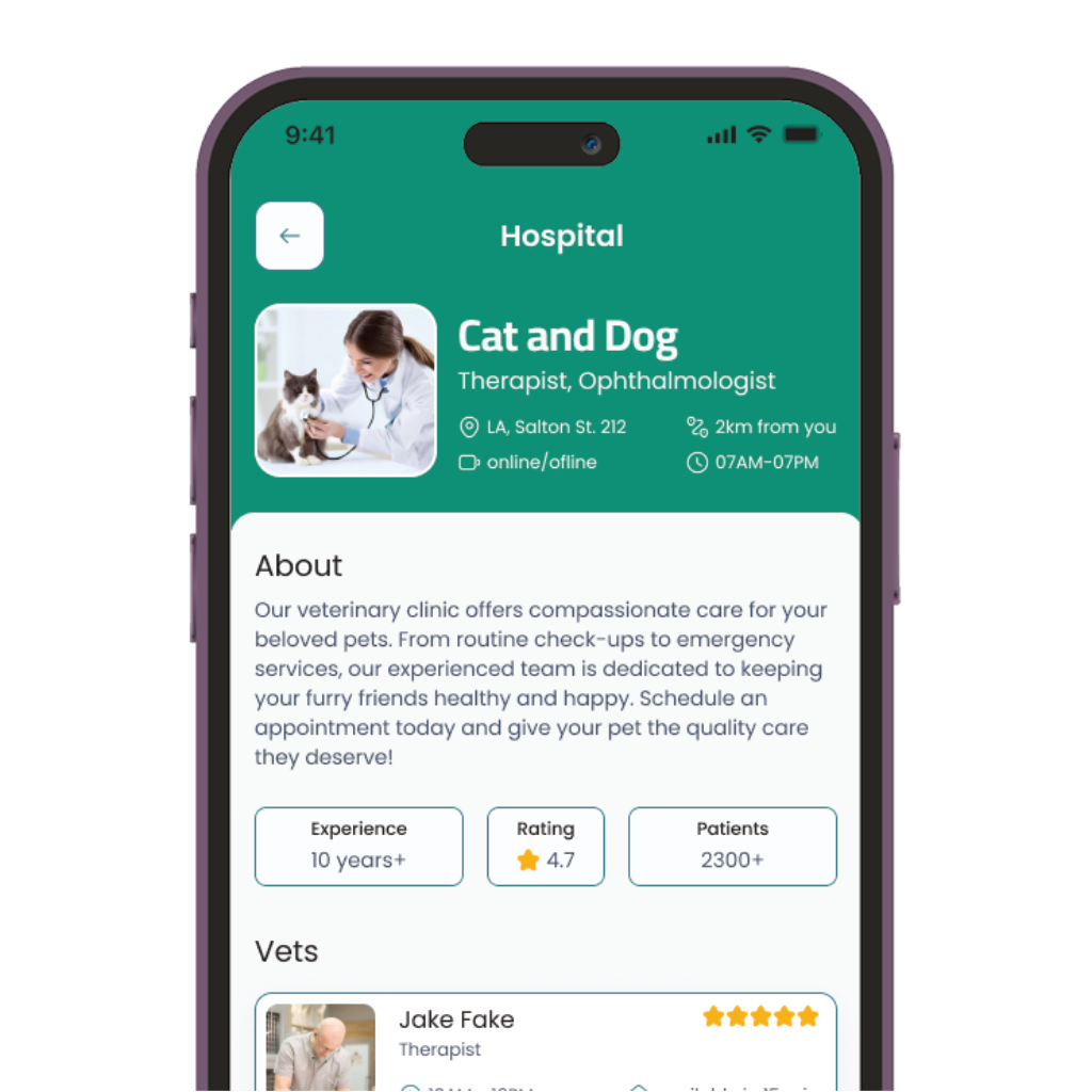 - Seamless Appointment Booking: Easily make and manage appointments with preferred veterinarians and specialized services.
