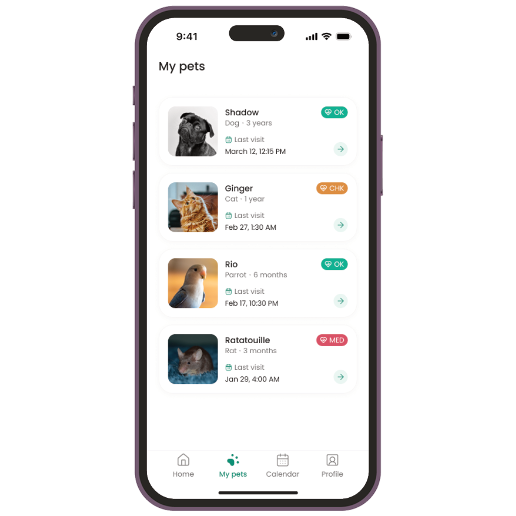 - Comprehensive Pet Management: Maintain digital pet profiles with vaccination records, medical history, and chip details all in one place.